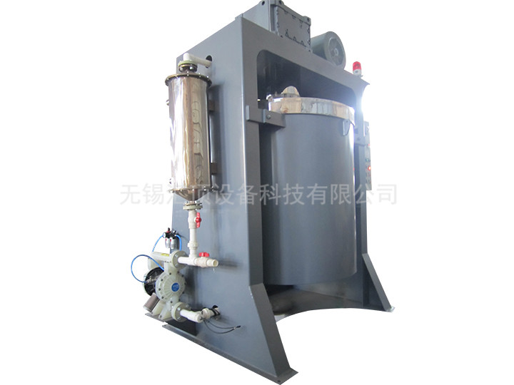 一種制造微粉的立式球磨機(jī),它是通過(guò)電機(jī)驅(qū)動(dòng)立式減速機(jī),通過(guò)聯(lián)軸節(jié),帶動(dòng)內(nèi)轉(zhuǎn)子研磨裝置旋轉(zhuǎn),使磨球、磨料、水混合液懸浮研磨。研磨過(guò)程中,水、磨料混合液通過(guò)循環(huán)系統(tǒng)連續(xù)循環(huán),直到達(dá)到標(biāo)準(zhǔn)。本裝置的特征在于:該內(nèi)轉(zhuǎn)子研磨裝置是由若干個(gè)沿?cái)嚢栎S螺旋上升的金屬攪棒垂直安裝的。