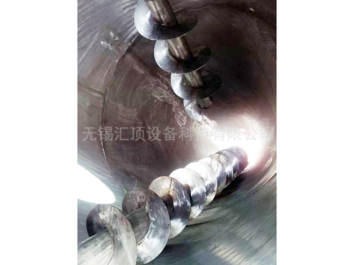 ● 螺旋部分:筒體內兩只非對稱排列的螺旋作自、公轉行星運動時,在較大范圍翻動物料,使物料快速達到均勻混合。