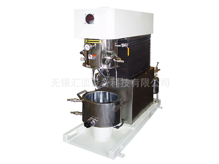 由攪拌桶、攪拌蓋、攪拌動力頭(含兩組低速攪拌槳、兩組高速分散器及一組刮壁槳)、溫控裝置、升降裝置、鎖桶裝置及控制系統等組成。